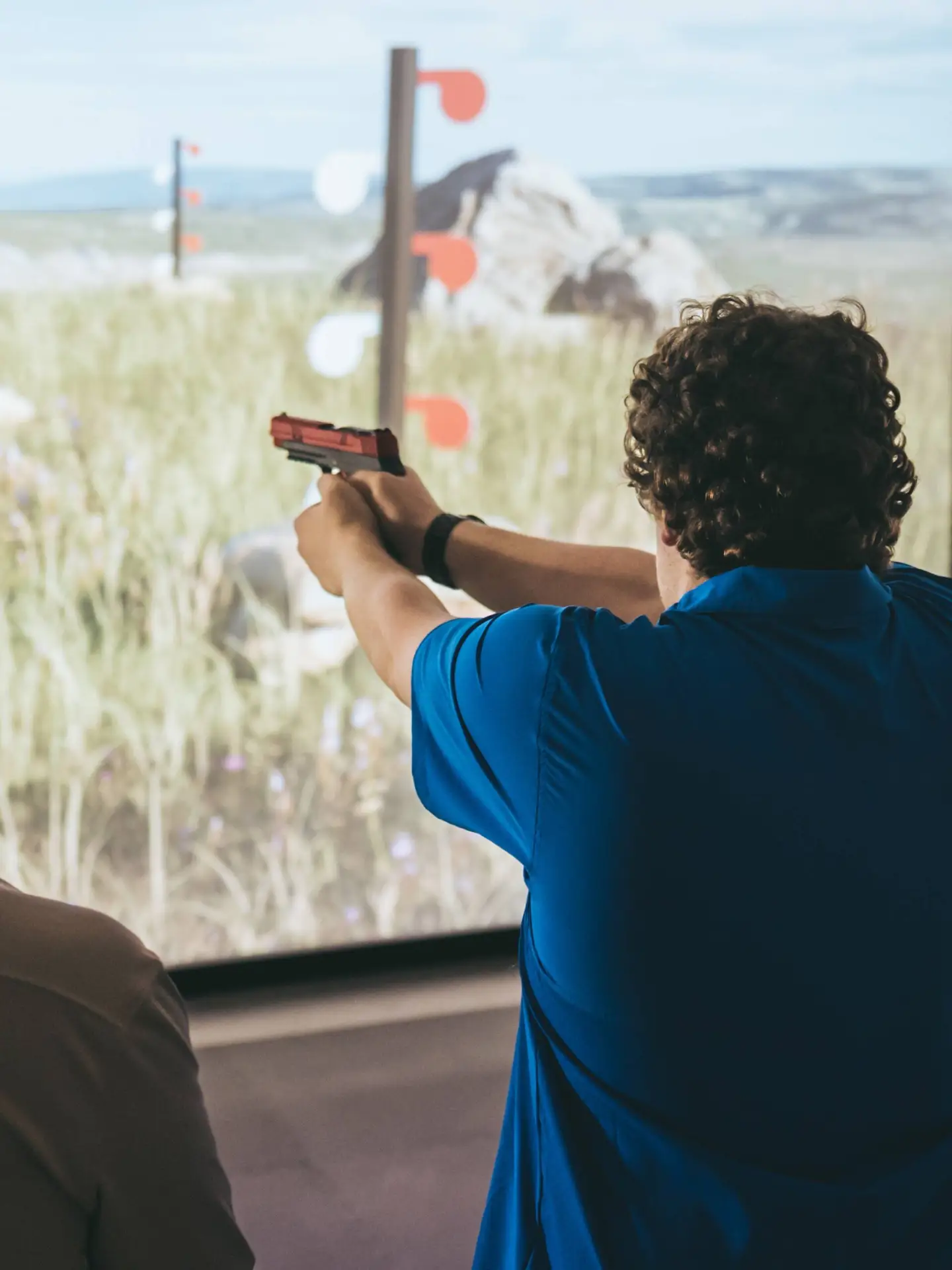 Click play to see Point Blank Simulator software in action and experience realistic, at-home firearms training.